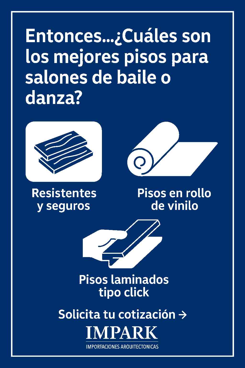 Si estás buscando renovar o instalar pisos para salones de baile o danza, en Impark te ofrecemos asesoría especializada y productos de alta resistencia para academias y estudios. Contáctanos hoy mismo para recibir una cotización personalizada y transforma tu espacio con pisos diseñados para el movimiento. 👉 Haz clic aquí para comunicarte con un asesor.