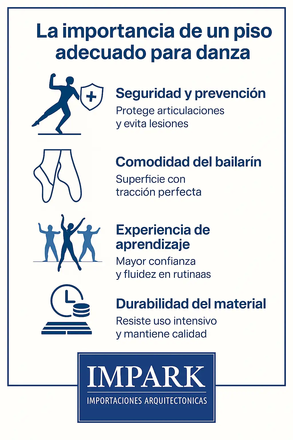 En Impark sabemos que cada academia de danza necesita un piso que potencie el talento de sus estudiantes. Por eso, te invitamos a dar el siguiente paso y transformar tu espacio con nuestros productos especializados. 👉 Solicita tu cotización aquí y recibe asesoría personalizada para tu proyecto.